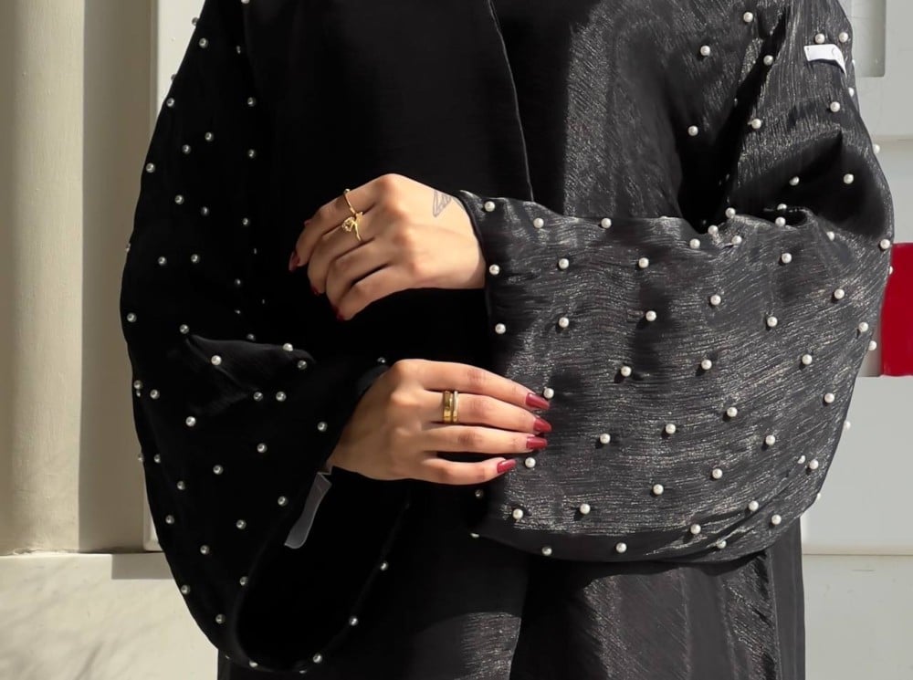 شيفون مبطن ب اكمام لولو اسود او ابيض حسب اختيار العميله